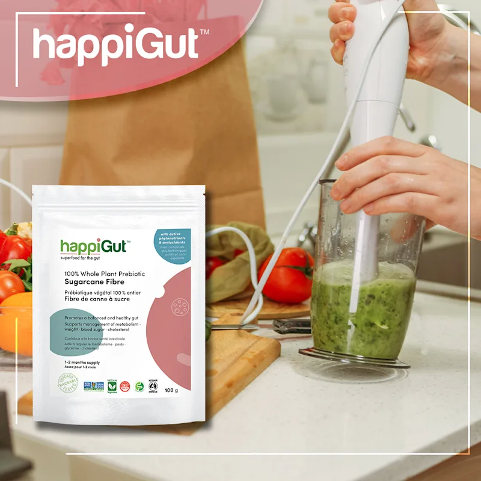 With our current fast-paced lifestyle, many of us struggle to meet the recommended 25-30g of fibre intake, and that’s where happiGut can help. happiGut is heaven sent when it comes to preventing that unpleasant irregularity. Our happiGut whole food prebiotic fibre is a perfectly balanced combination of soluble and insoluble fibres. It improves gut health and helps to get closer to your daily fibre requirements while improving microbiome diversity. The naturally-derived fibre supplement delivers the fibre equivalent of 2 servings (166 g) of fruits and vegetables without the sugar.